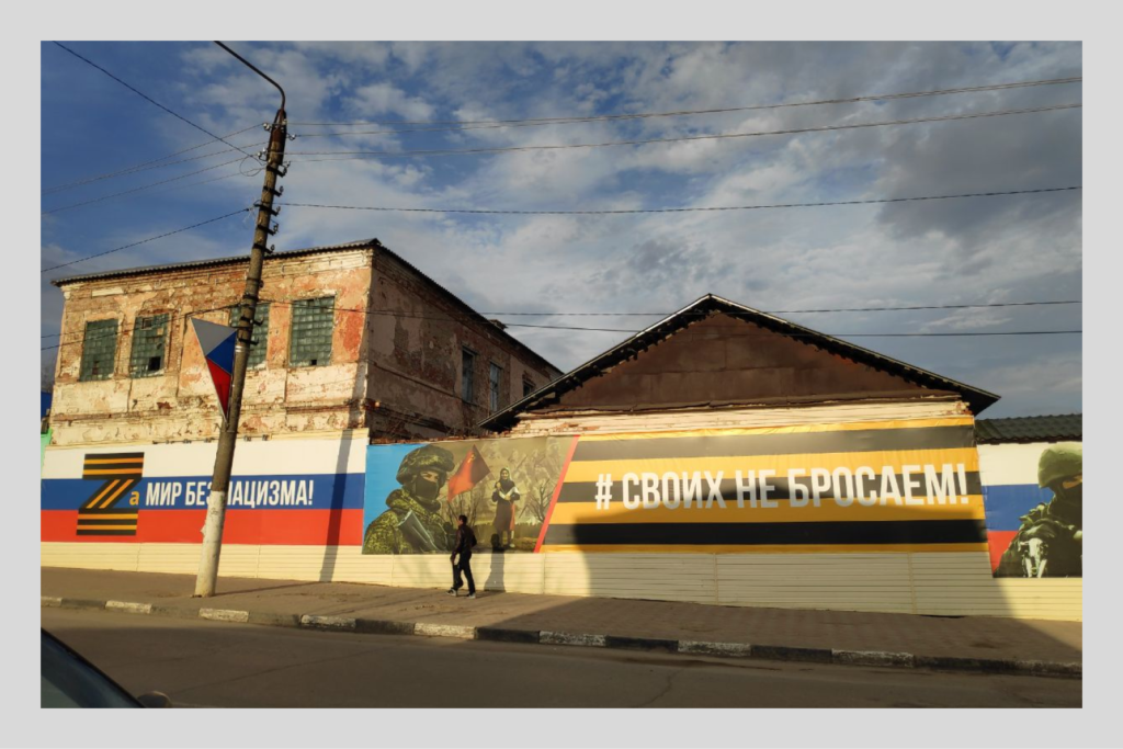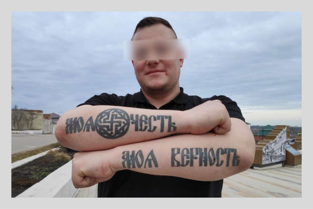 В апрельские выходные город выглядит безлюдным. Единственные, кого корреспондент «Вёрстки» встретил в воскресенье вечером на Красной площади, — трое подвыпивших мужчин. Через минуту знакомства горожане хвастались, что они якобы бойцы ЧВК «Вагнер» на побывке. Парень, который назвался Бесом, с удовольствием показывал свои татуировки: «Это такой славянско-скандинавский инь-янь», — комментировал он изображения рун на шее. На его предплечьях — надпись «Моя честь — это верность» и свастика. Под песни Тимура Муцураева мужчины рассказывали истории о своих судимостях, о пытках пленных советским кипятильником, о подрывах на мине-«лягушке», об оторванных ногах сослуживцев и о погибших товарищах, которых, по словам Беса, уже «больше, чем друзей во „ВКонтакте“». Рядом с Красной площадью — храм, куда вагнеровцы, по их словам, днём ходили ставить свечки в память о погибших. Сказали, что после этого на душе стало легче.