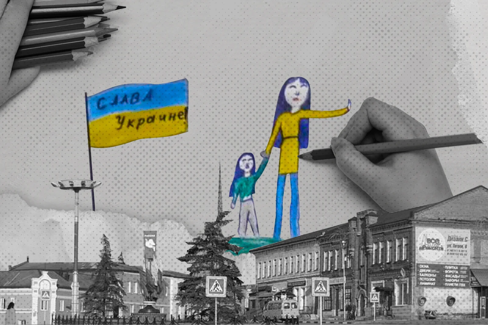 Ефремов — небольшой райцентр в Тульской области. Здесь живут немногим больше 30 тысяч человек. В центре — площадь, которая называется Красной, благоустроенная в модном московском духе за 90 млн рублей. На углу площади — развалина купеческого особняка, дома Деревенёва, у которого уже обрушилась крыша и рушатся стены. Сейчас руина спрятана за огромным баннером с надписью «Сила V правде», изображениями солдат и стихами «Добро должно быть с кулаками».