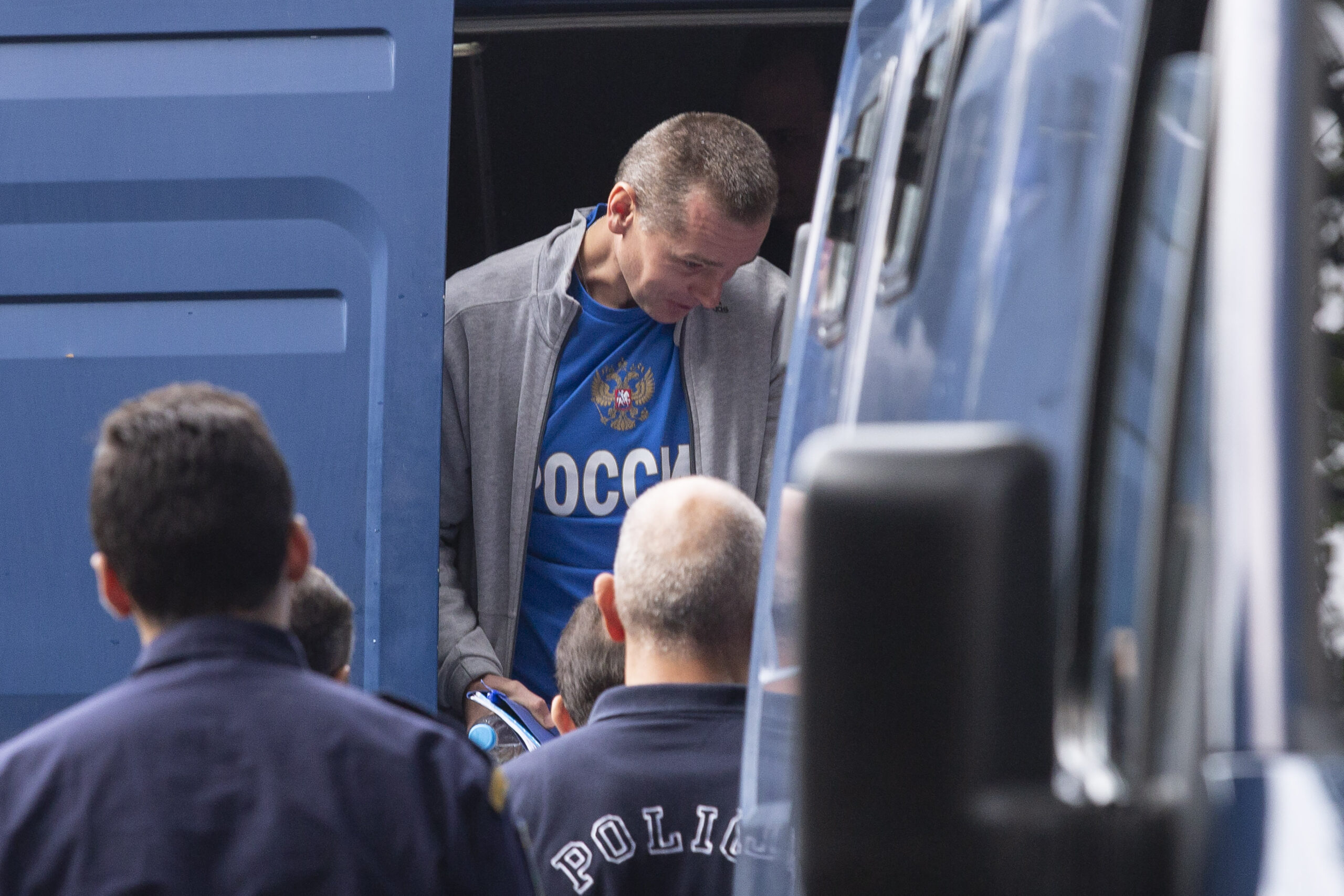 Фото: Подозреваемый в мошенничестве с биткоинами и отмывании денег Александр Винник выходит из транспортного фургона, чтобы войти в суд Греции в Салониках для допроса французскими следователями 1 октября 2018 года в Салониках, Греция. Nicolas Economou/NurPhoto via Reuters.