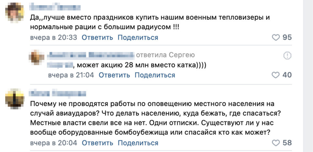 «Лучше унынье, но зато парни одеты, обуты, с квадрокоптерами, тепловизорами и прочими вещами, которые им очень необходимы», — пишет одна из жительниц области под постом губернатора.