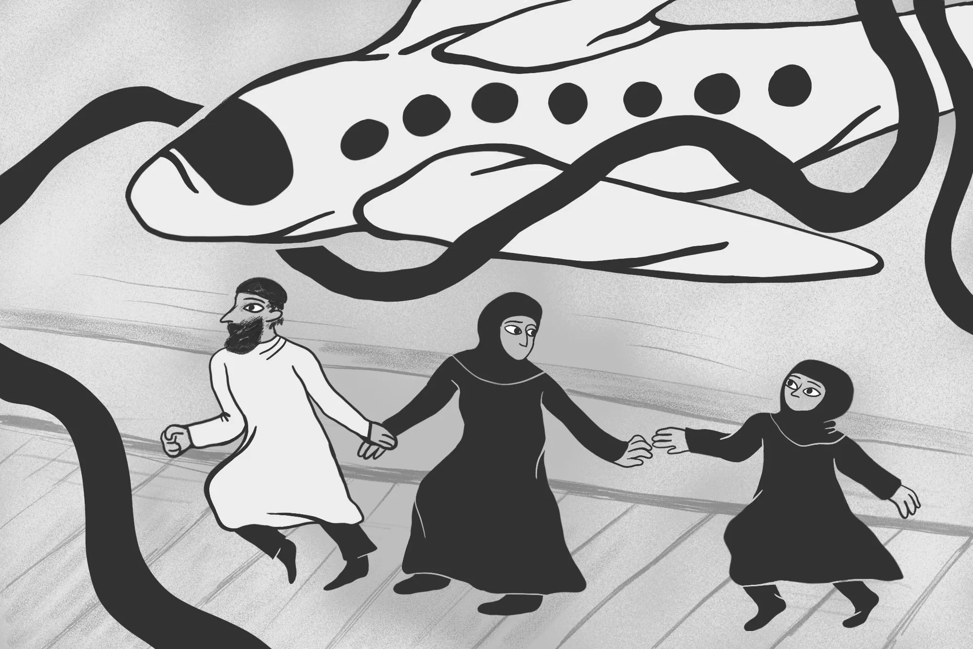 В аэропорту Амаль стало страшно. Она боялась, что пограничники проверят её документы и узнают, что она выходила на протесты. Но под длинной чадрой, укрывавшей её с головы до ног, она, к своему удивлению, почувствовала себя защищённой.