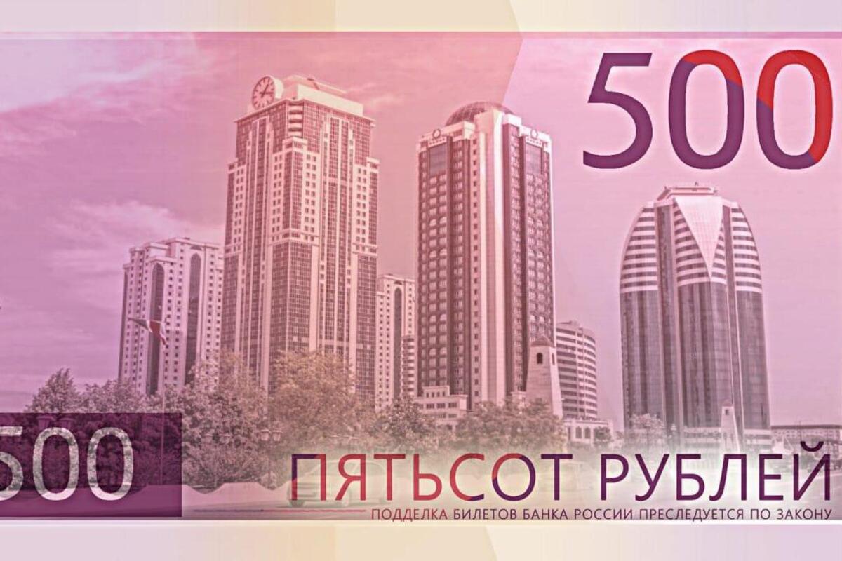 Фото: Эскиз купюры в 500 рублей с изображением «Грозный-Сити». Вести Чеченской республики