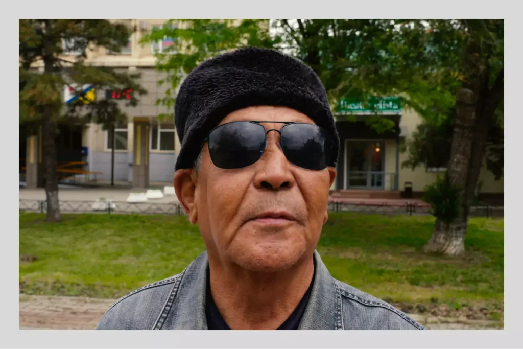 Калмыцкий активист лет пятидесяти, противник войны, назначает встречу возле этой ступы. Сложив ладони перед лицом, он шёпотом читает мантры, а потом мы вместе раз за разом обходим ступу по часовой стрелке — буддисты считают, что это улучшает карму. Он не разрешает не только снимать или упоминать его имя, но даже включить диктофон, и всё же не умолкает ни на минуту. Ему важно выговориться.