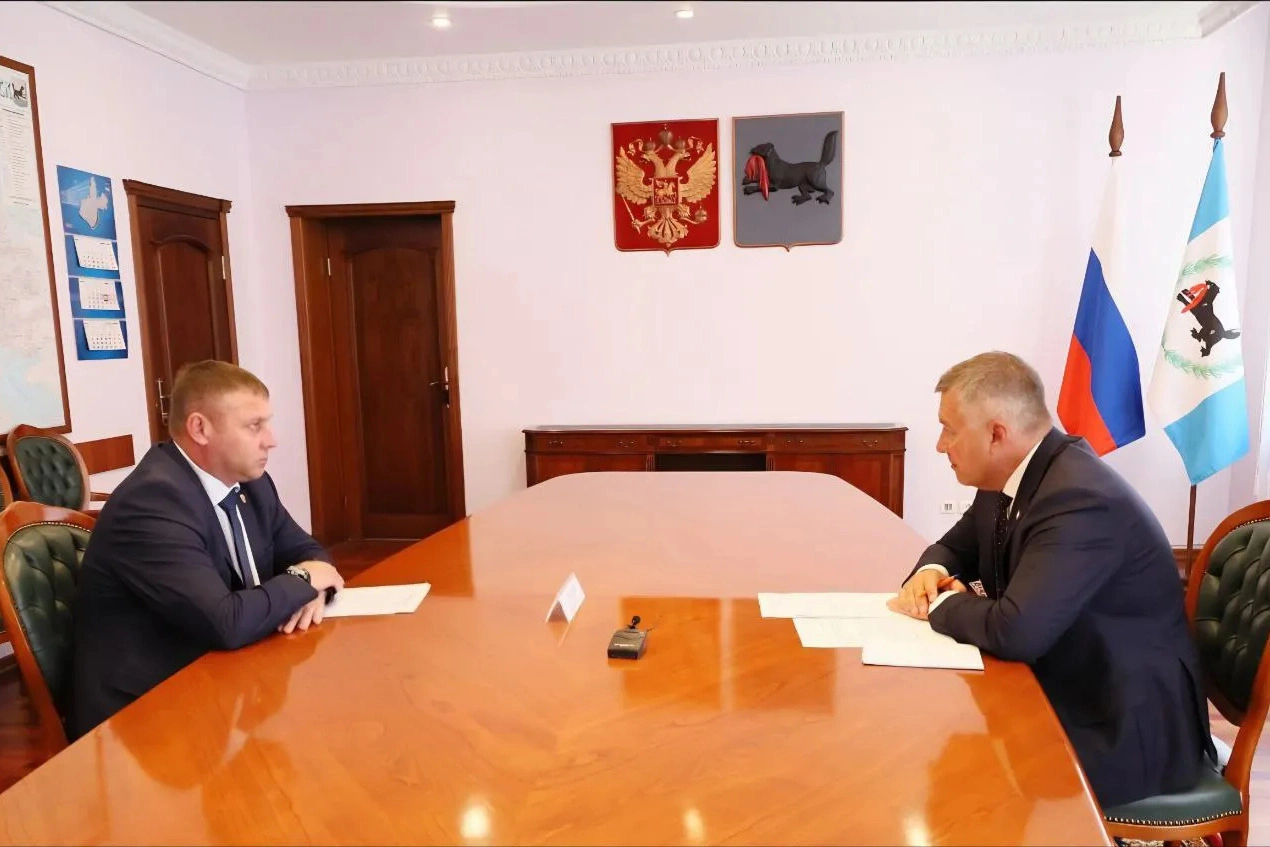 Фото: Александр Шуваев беседует с губернатором Иркутской области Игорем Кобзевым. Пресс-служба губернатора и правительства Иркутской области
