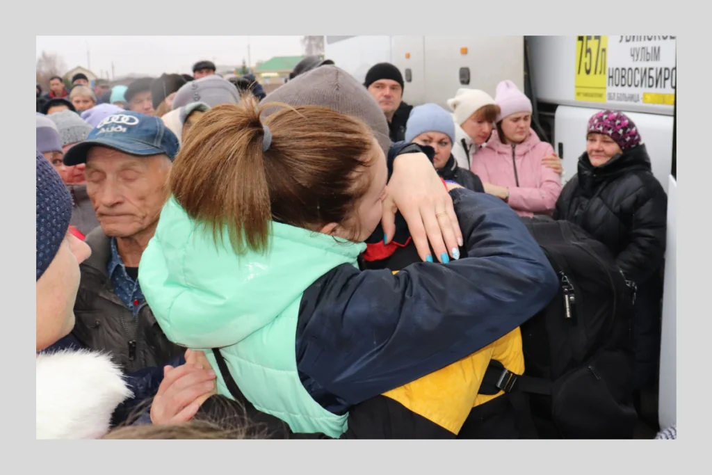 Родственники провожают мобилизованных в Новосибирской области. 27 октября 2022 года. Фото со страницы главы Убинского района «ВКонтакте»