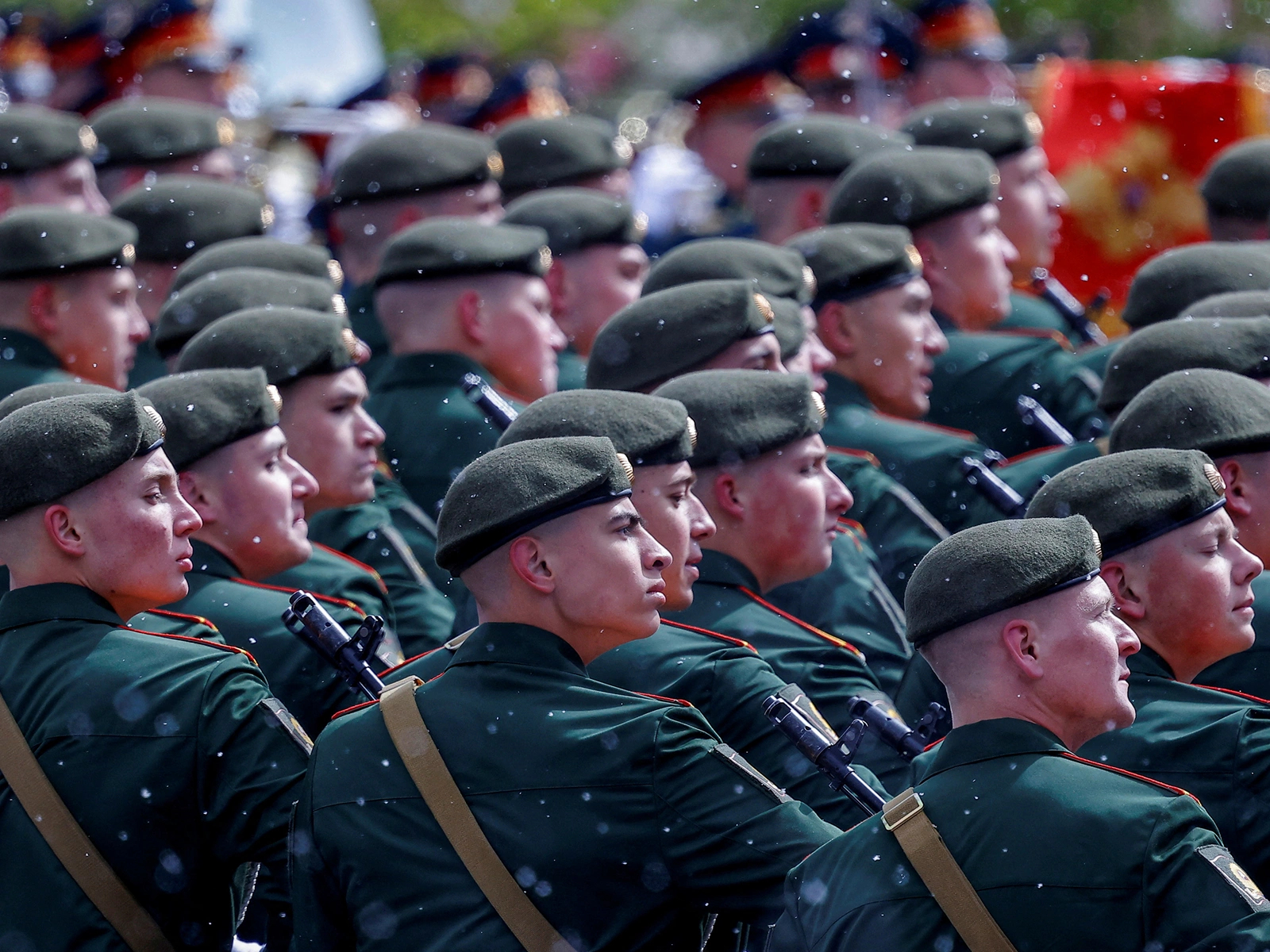 Фото: Российские военные маршируют во время парада в Москве, Россия, 9 мая 2024 года. (REUTERS/Максим Шеметов)