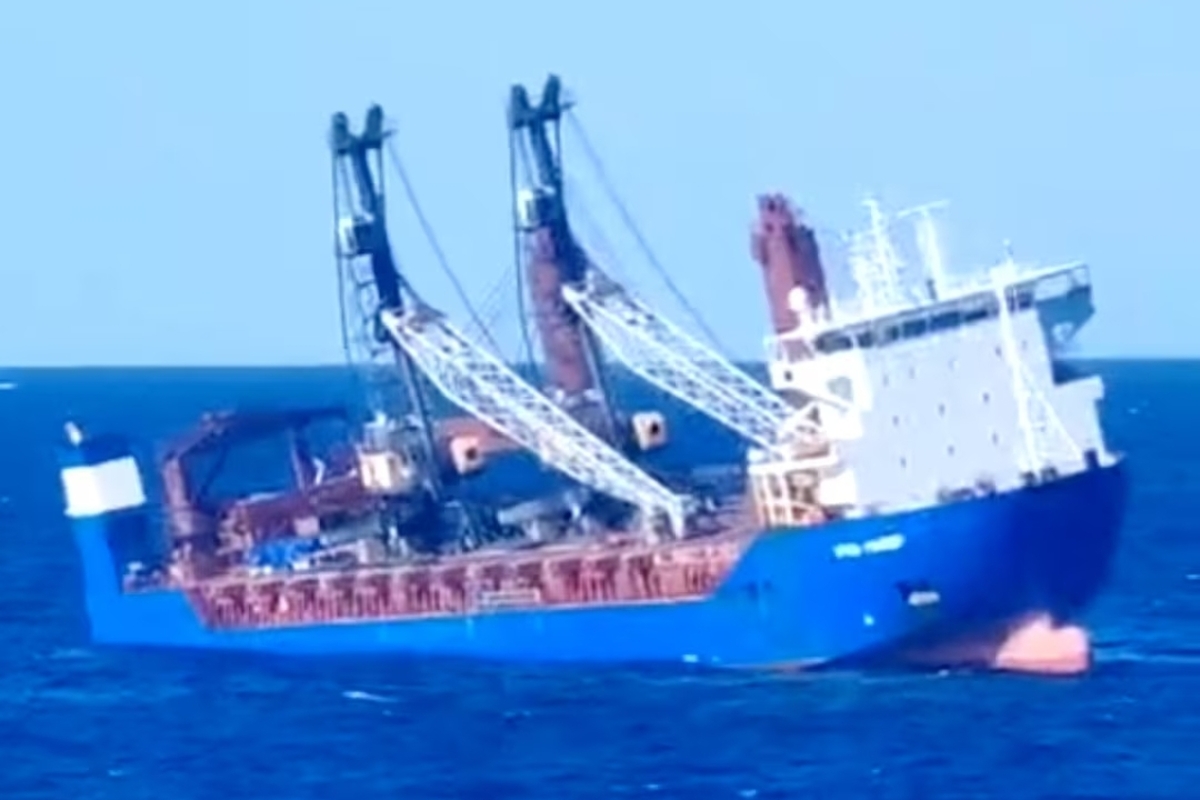 Фото: Сухогруз Ursa Major с креном на левый борт после аварии. Открытые источники