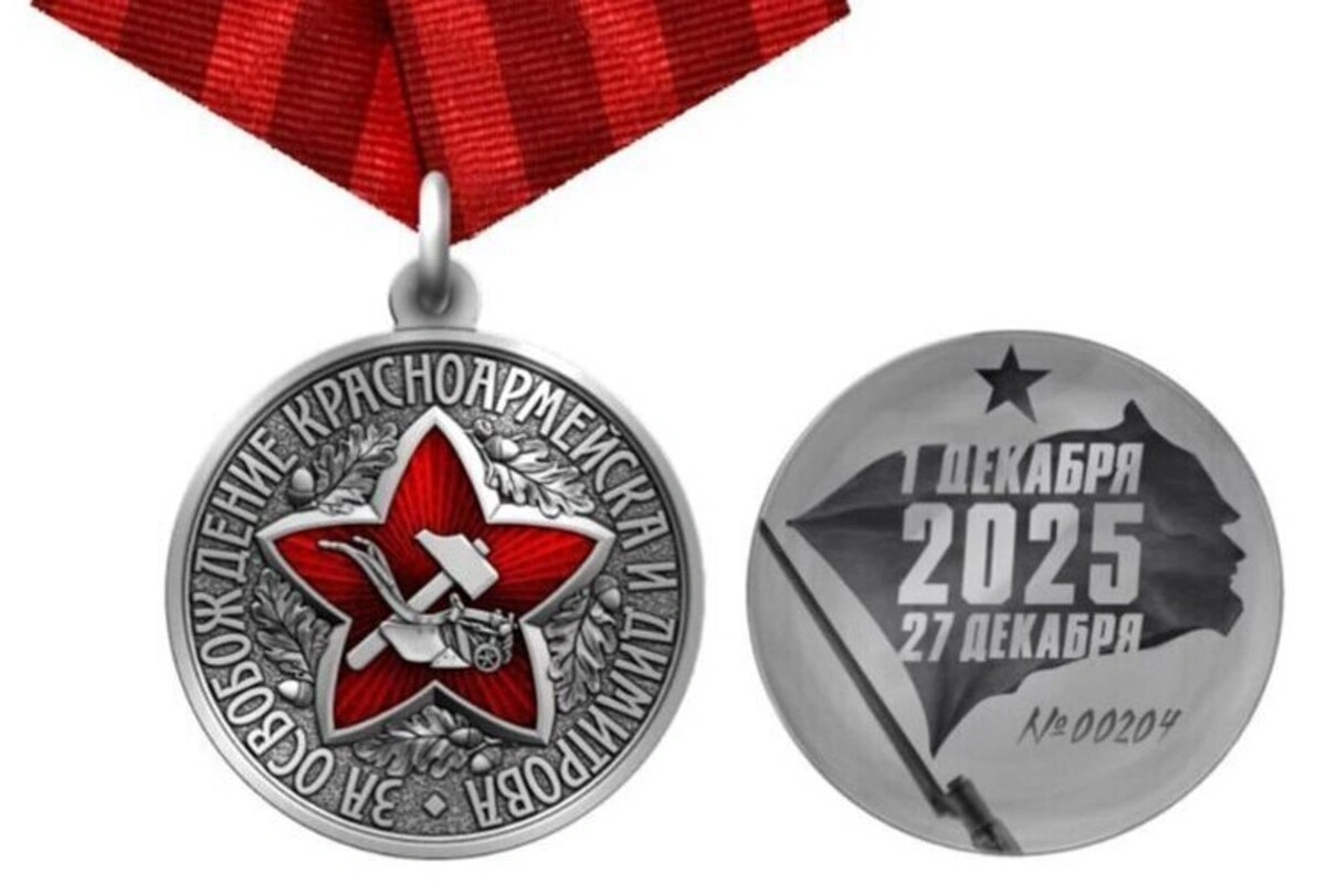 Медаль называется «За освобождение Красноармейска и Димитрова» (так российские власти называют Покровск и Мирноград в Донецкой области). Положение об этой награде предполагает, что ей могут быть награждены любые «лица, принимавшие непосредственное участие» в захвате этих двух городов с 24 февраля 2022-го по январь 2026 года.
