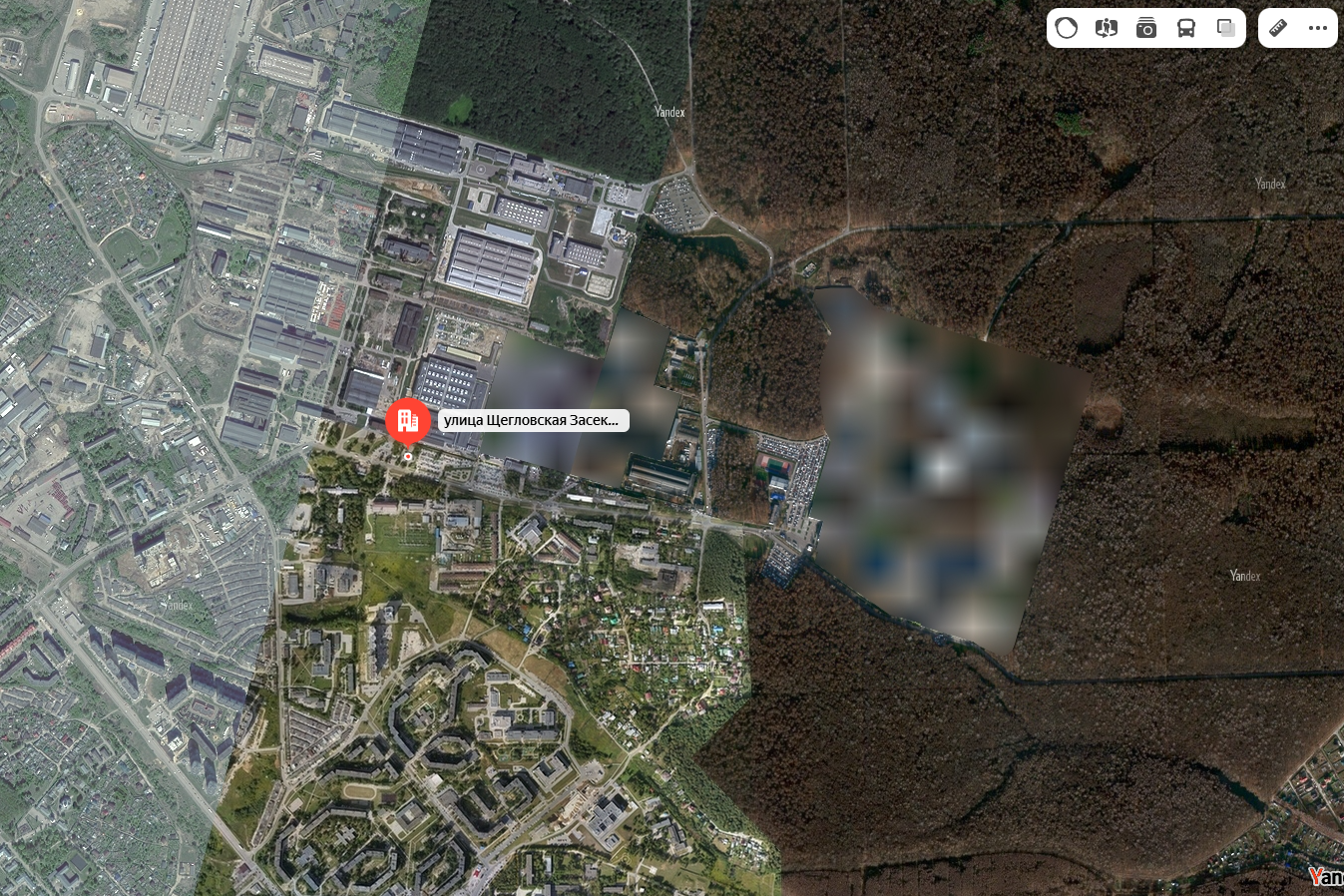 Фото: Заблюренное военное предприятие на картах «Яндекса»