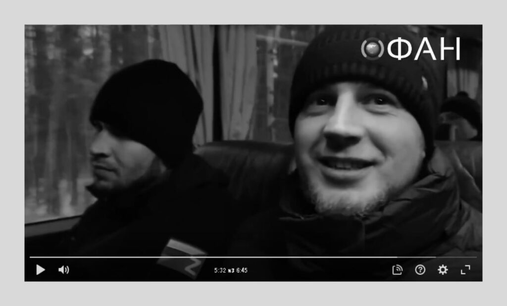 На видео бывшие заключённые, побывавшие на фронте в составе ЧВК Вагнера, едут на автобусе в Петрозаводск, чтобы оттуда разъехаться по домам. Они только что прилетели из зоны боевых действий. На родине их лично встретил основатель ЧВК Евгений Пригожин и напутствовал «помнить заповеди». «Чтобы попасть к нам на войну опять, не обязательно садиться», — объявил он и добавил, что желающие продолжить воевать могут продолжить делать это в составе ЧВК, а остальные могут «жениться, креститься, учиться».