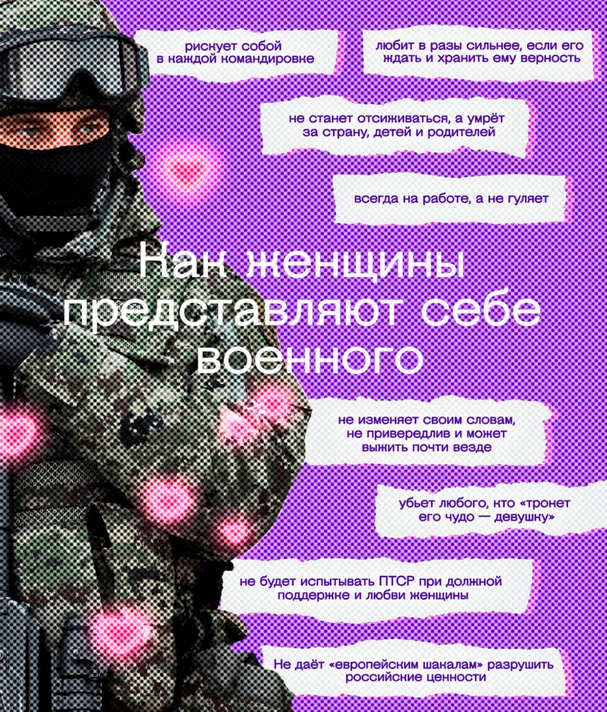 «Вёрстка» написала десяткам женщин из трёх самых крупных групп для знакомств, чтобы узнать, как они представляют себе идеальные отношения и почему хотят строить их именно с военными.